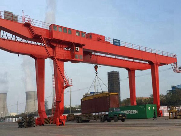 安徽淮南龍門吊租賃,集裝箱龍門起重機用于集裝箱碼頭。拖掛車將岸壁集裝箱運載橋從船上卸下的集裝箱運到堆場或后方后,由集裝箱龍門起重機堆碼起來或直接裝車運走,可加快集裝箱運載橋或其他起重機的周轉。可堆放高3~4層、寬6排的集裝箱的堆場,一般用輪胎式,也有用有軌式的。集裝箱龍門起重機與集裝箱跨車相比,它的跨度和門架兩側的高度都較大。為適應港口碼頭的運輸需要,這種起重機的工作級別較高。起升速度為8~10米/分;跨度根據需要跨越的集裝箱排數來決定,*大為60米左右相應于20英尺、30英尺、40英尺長集裝箱的起重量分別約為20噸、25噸和30噸。