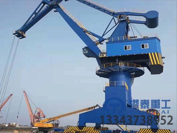 設計核心是 “多功能性”—— 既能通過旋轉(zhuǎn)快速切換作業(yè)方向,又能通過變幅調(diào)整作業(yè)半徑,適應港口、碼頭等 “多品類貨物(集裝箱、散貨、件雜貨)” 或造船中 “非固定工位” 的吊裝需求,額定起重量通常為 10-500 噸,兼顧 “靈活性” 與 “載荷能力”。